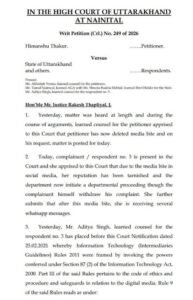 यह टिप्पणी न्यायमूर्ति राकेश थपलियाल की एकलपीठ ने हिमांशु ठाकुर बनाम राज्य सरकार व अन्य (रिट याचिका (क्रिमिनल) संख्या 249/2026) की सुनवाई के दौरान की।