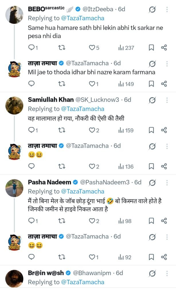 एक यूजर ने लिखा, में तो नौकरी बिना मेल भेजे ही छोड़ दुगा, वो किस्मत वाले होते हैं जिनकी जमीन के ऊपर से हाइवे निकलता है, दूसरे ने लिखा, अब वो माला माल हो गया है उसको नौकरी करने की जरूरत नहीं, एक यूजर ने लिखा, अब तो करोड़ों मिलेंगे।